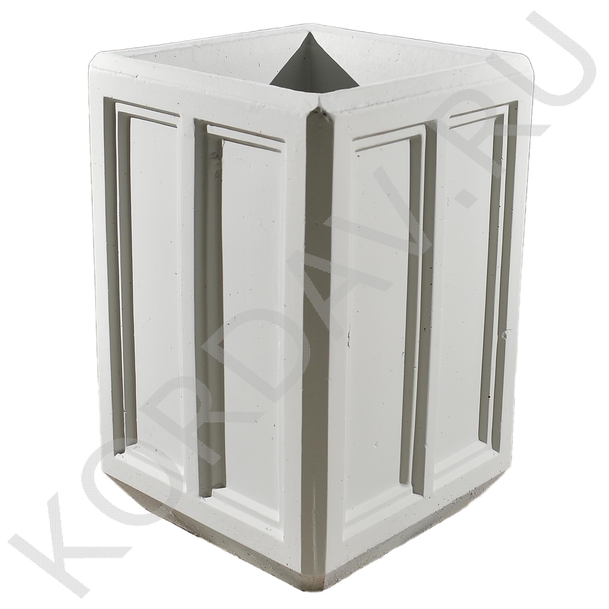 - Форма: четырёхгранная с рельефным рисунком, дно отсутствует для свободного дренажа